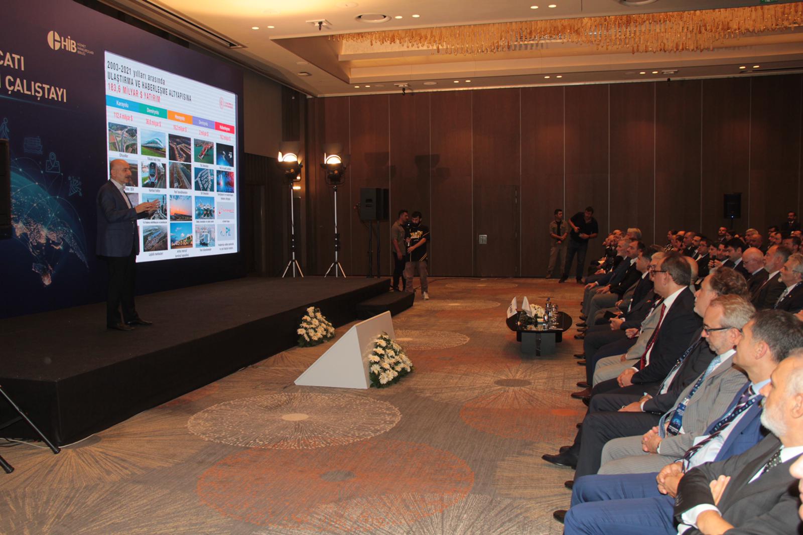 Çalıştayın açılış konuşmasını yapan, HİB Başkanı Ahmet Bolat mal ihracatının yapılabilmesi için lojistik sektöründen yararlanılabilmesi gerektiğini söyleyerek, sektörün mal ihracatına destek verirken aynı zamanda yaptığı ihracatla döviz kazandırıcı sektör olma özelliğine vurgu yaptı.