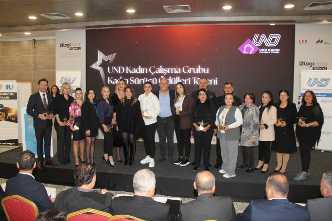 UND Yönetim Kurulu Başkanı Şerafettin Aras sektöre öncülük eden Kadın TIR sürücüler ödüllerini takdim etti. Gülsen DEMİRCİ (Hilal Trans), Nilüfer ALBAYRAK (Mars Lojistik), Vildan ÖZDEMİR (Transbatur), Elçin ÖRSDEMİR (Evolog), Erengül BAL (Evolog), Yaşa KARACA (Atiz Heavy Lojistik),Nurşen ÖZTAŞ (U Lojistik), Büşra KARA (U Lojistik), Meryem ÇELİK (Assan), Nazmiye KAYA (Assan),Neziha BAHAR (Assan) ve Cansel TUNÇ (SCSLOG) sürücüler ödül almaya hak kazanırken, kadın yönetici olarak sektöre değer katan Talay Lojistik A.Ş. Operasyon Müdürü Cansu ÇELİK, IRU Başkan Vekili Aslı ÇALIK ve RU-TIR&Transıt Dırectorü Tatiana Rey Bellet’te ödüllerini aldı.